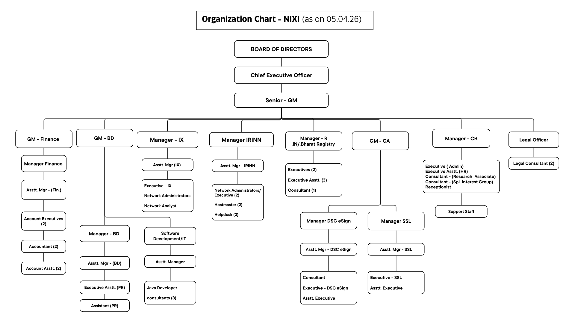 As per HR policy of NIXI, there are employees at Seven levels functioning in various capacities like: |